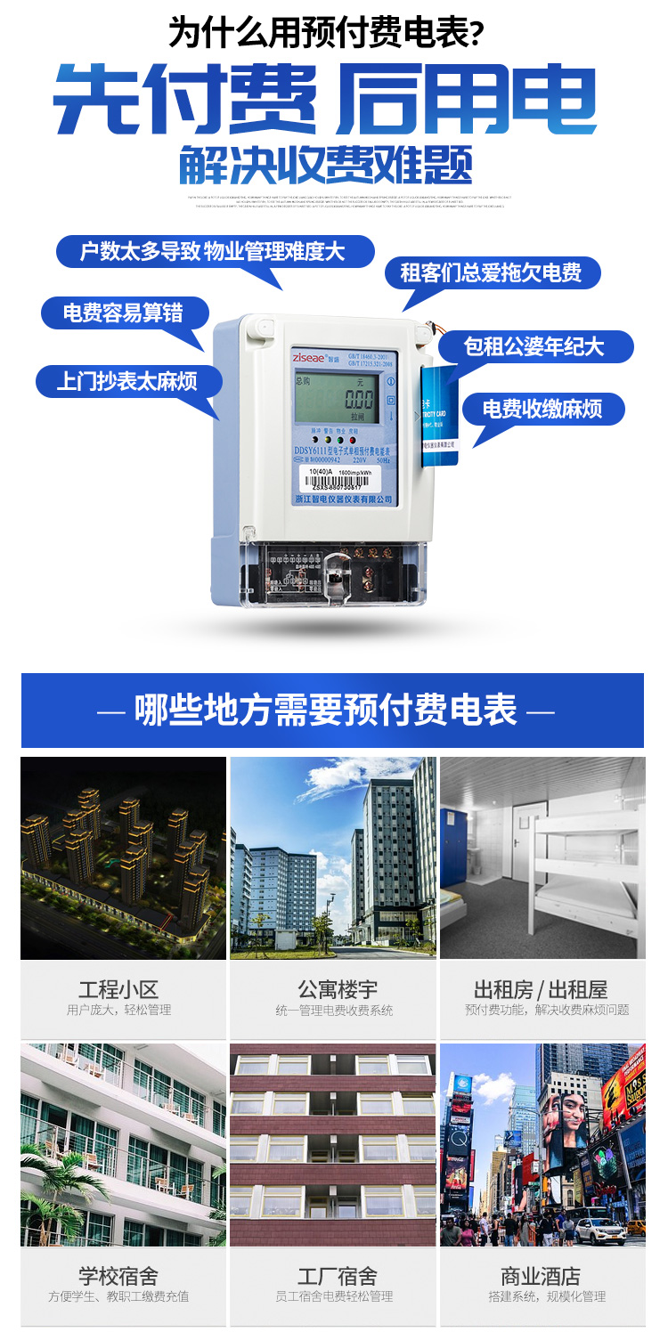 (4)預(yù)付費(fèi)電度表適用的場所:工程小區(qū)用戶-龐大輕松管理,公寓樓宇-統(tǒng)一管理收費(fèi)系統(tǒng),出租房或出租屋-預(yù)付費(fèi)功能解決收費(fèi)麻煩問題,學(xué)校宿舍-方便學(xué)生教職工收費(fèi)充值,工廠宿舍-員工宿舍電費(fèi)管理,商業(yè)酒店-搭建系統(tǒng)規(guī)?;芾淼染唧w如下。