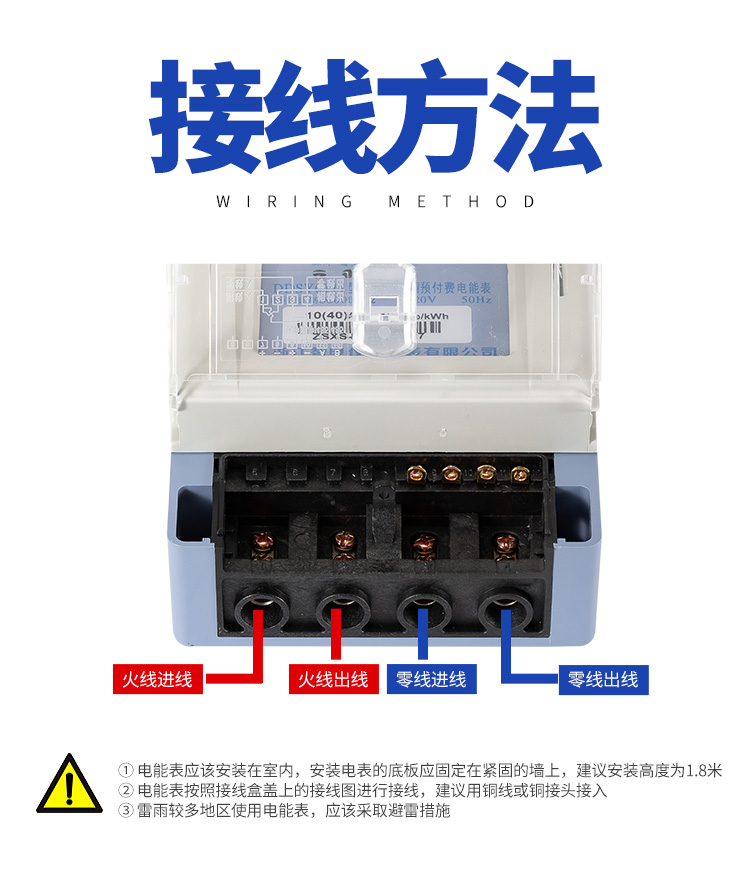 (9)電能表外形和接線方式,接線:第一孔柱進(jìn)火線和第二孔柱出火線,第三孔柱進(jìn)零線和第四孔柱出零線