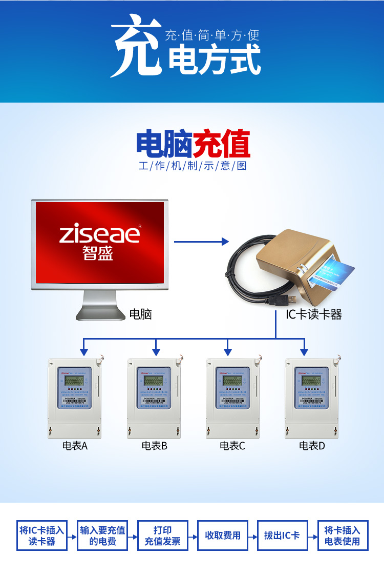 (二)充電方式:三相預(yù)付費電度表(公用表)的充值系統(tǒng)安裝到電腦上,讀卡器連接電腦的USB進口,就可以實現(xiàn)對電表IC的充值,充值成功后用戶就可以插電表使用了,可實現(xiàn)一表多卡和多表多卡的功能。(具體操作的書面教程和視頻教程可進入官網(wǎng)查看)