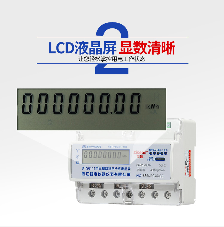 5.顯示功能 :采用寬溫大液晶方式顯示各類信息;電能量顯示位數為6為整數,2為小數,具有參數自動輪顯功能。