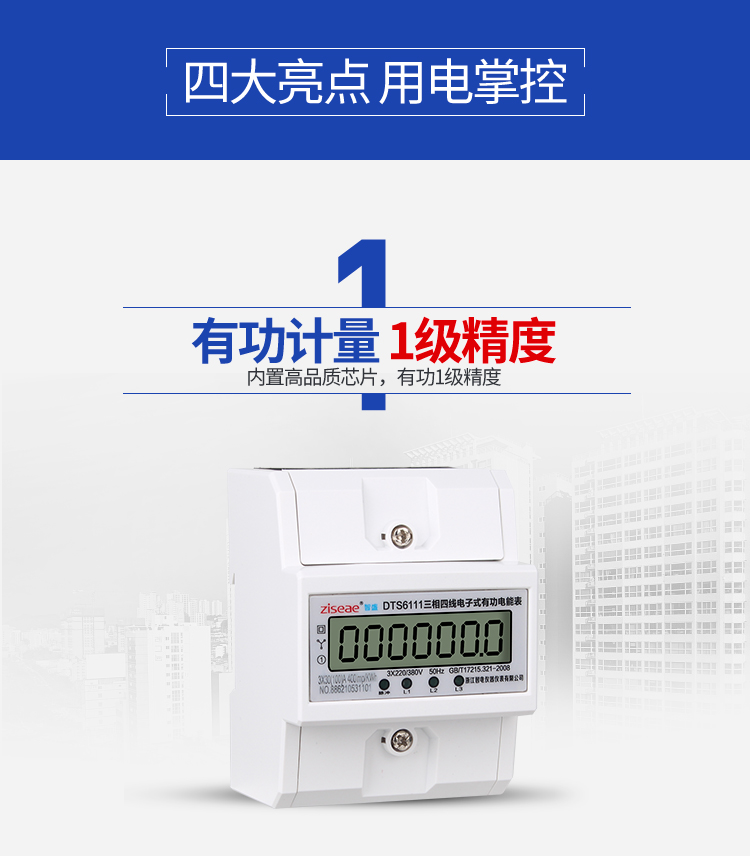 DTS6111、DSS6111型三相有功電能表,是一種室內三相電能表,是我公司為了適應我國電網改造,適應我國國情而設計開發的電能表。它具有較高的準確度和可行性。本儀表采用國際先進的低功耗模集成電路技術及SMT先進工藝,關鍵元器件選用進口品牌、長壽命器件,提高了產品的可靠性,延長了使用壽命。準確計量有功電能,且可以通過紅外通訊方式抄電量,讀數直觀且使用方便。本儀表設計符合標準GB/T 17215.321-2008《1級和2級靜止式交流有功電能表》、GB/T 17215.323-2008《2級和3級靜止式交流無功電能表》。