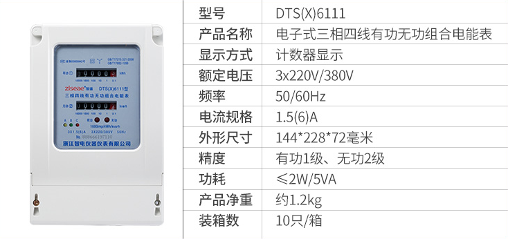 DTS(X)6111三相四線有功無功組合電表(計數(shù)器)