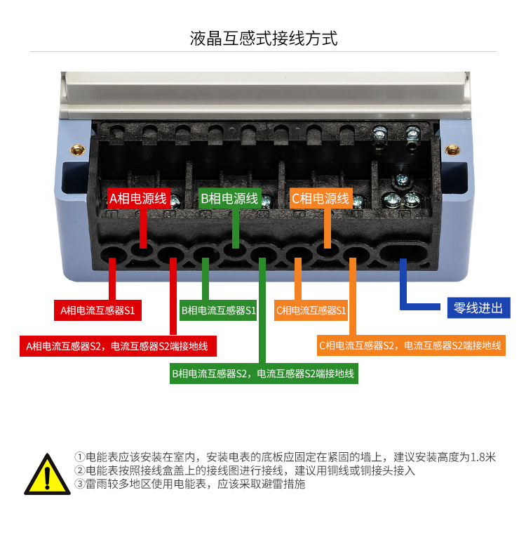 電能表安裝在室內(nèi)或室外電表箱內(nèi),安裝底座應(yīng)固定在堅(jiān)固耐火的墻上,空氣中無(wú)腐蝕性氣體,具體安裝尺寸圖見(jiàn)附錄圖一(建議安裝高度為1.8m);安裝過(guò)程中如果本機(jī)受到劇烈撞擊或高空跌落外殼有明顯損毀時(shí),請(qǐng)不要安裝、加電,并盡快與供應(yīng)商聯(lián)系。