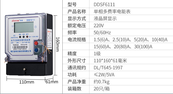 DDSF6111單相電子式多費(fèi)率電能表,采用單片機(jī)處理系統(tǒng)設(shè)計(jì)而成,具有電路簡單、可靠性高、成本低等優(yōu)點(diǎn)。該產(chǎn)品軟件、硬件、結(jié)構(gòu)設(shè)計(jì)技術(shù)先進(jìn),計(jì)量精度高,結(jié)合單片機(jī)資源,實(shí)現(xiàn)電能分時(shí)計(jì)量,具有紅外及RS-485通信功能,抗干擾、防攻擊性能好,工作溫度范圍寬,能長期穩(wěn)定可靠工作。該產(chǎn)品各項(xiàng)性能指標(biāo)符合國家GB/T 17215-2002《1級和2級靜止式交流有功電能表》、GB/T 15284-2002《復(fù)費(fèi)率(分時(shí))電能表特殊要求》、DL/T 645-1997《多功能電能表通信規(guī)約》等標(biāo)準(zhǔn)的技術(shù)要求。