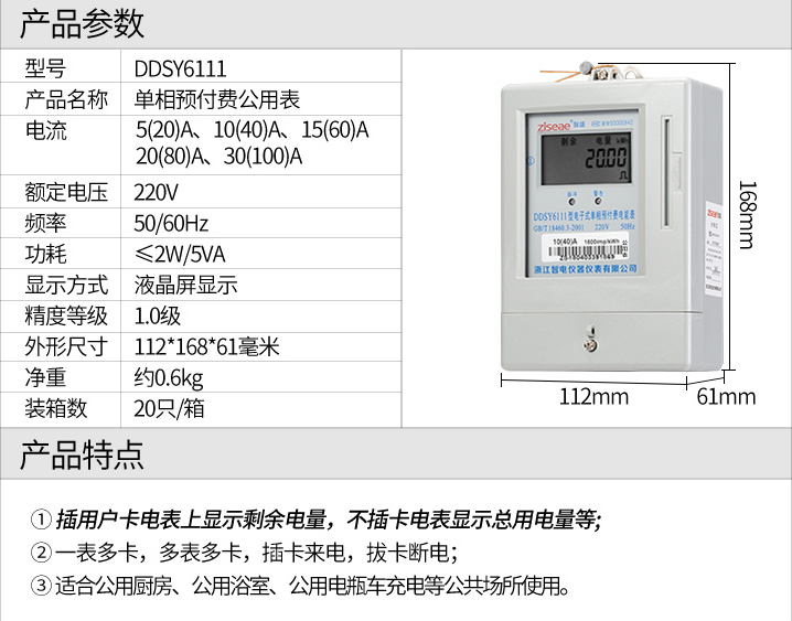 DDSY6111型電子式單相插卡預付費電表,采用集成電路設(shè)計,全自動表面貼裝(SMT)生產(chǎn)工藝制造。電能表的線路設(shè)計和元器件選擇以較大的環(huán)境允差為依據(jù),可保證整機穩(wěn)定工作,精度高、高過載、低功耗,可靠性能高。內(nèi)置磁保持繼電器。通過控制繼電器實現(xiàn)控制負載的通與斷,實現(xiàn)督促用戶先買電后用電的功能。
