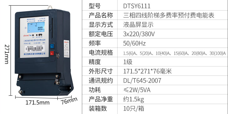 DTSY6111型三相四線階梯多費(fèi)率預(yù)付費(fèi)電能表(以下簡稱“儀表”)是根據(jù)居民實(shí)際用電狀況所設(shè)計(jì)、制造。它具有較高的準(zhǔn)確度和可靠性。