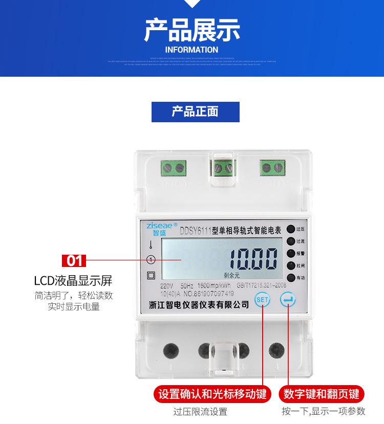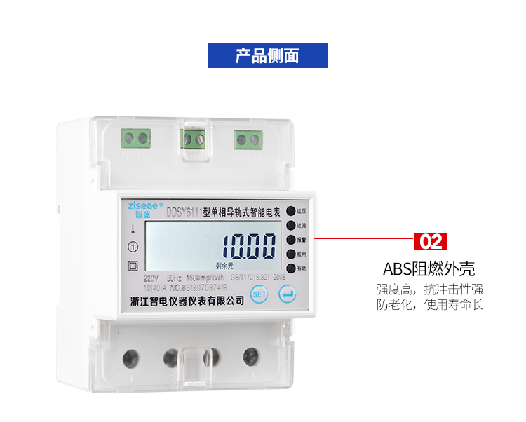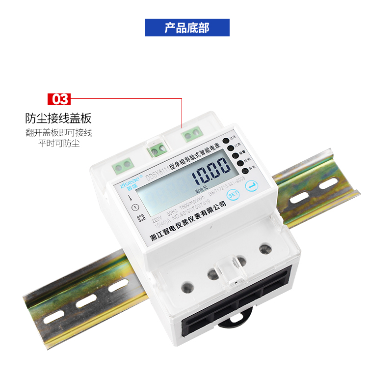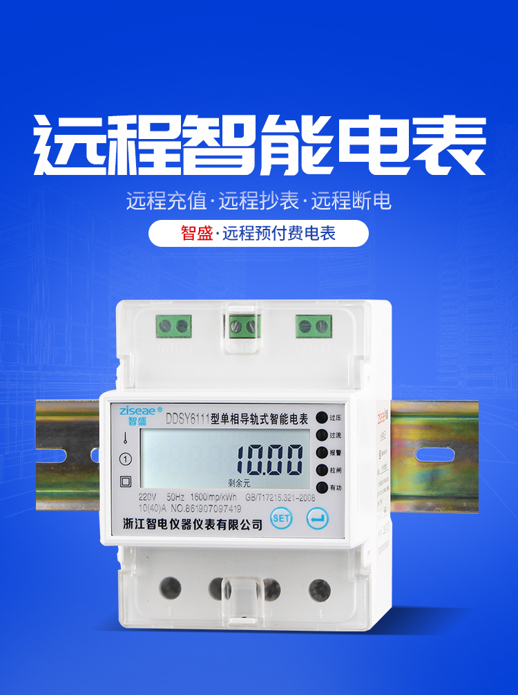 DDSY6111型遠程導軌式單相預付費電能表,采用單片微控制器進行數據采集,處理和保存。具有良好的抗電磁干擾,低功耗,高過載準確度高,壽命長等優點。其性能指標符合GB/T 17215.321-2008《1級和2級靜止式交流有功電度表》中對電子式有功電度表的技術要求,符合GB/T15284-2002《多費率電能表 特殊要求》對復費率電能表的技術要求,并符合GB/T18460-2001《IC卡預付費售電系統》的各項技術要求。通信規約可支持DL/T 645-2007《多功能電能表通信規約》,為用電自動化管理提供了必備的條件。