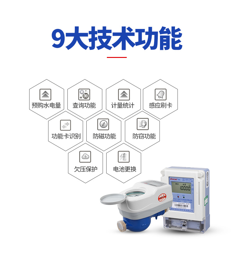 1、概述預付費水表是以旋翼式水表為基表,由干簧管取信裝置、低功耗電控閥門、微電腦控制系統、射頻卡信息系統集合而成的智能水表。該產品改變了傳統的用水收費方 式,由“先用水后交費”變為“先交費后用水”,   每次售水收款都有記錄,解決了“收費難、賬目亂”這兩個水費管理工作中的難題。有遠傳抄表功能的預 付費水表還可實時統計用水數量,為水費結算提供依據。產品符合國家標準GB/T778-2007《封閉滿管道中水流量的測量、飲用冷水水表和熱水水表》的全部技術要求。